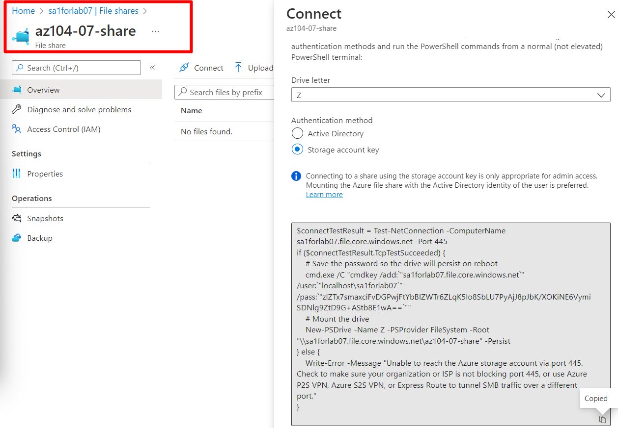 New-Item -Type File -Path 'Z:\az104-07-folder\az-104-07-file.txt'