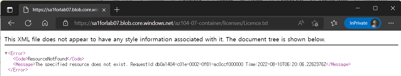 Container Access 형식이 Private로 되어 있기 때문에 보이지 않는 것이다.