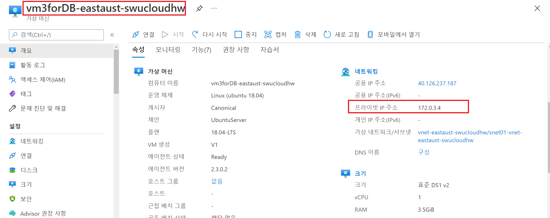 이름 : vm3forDB-eastaust-swucloudhw