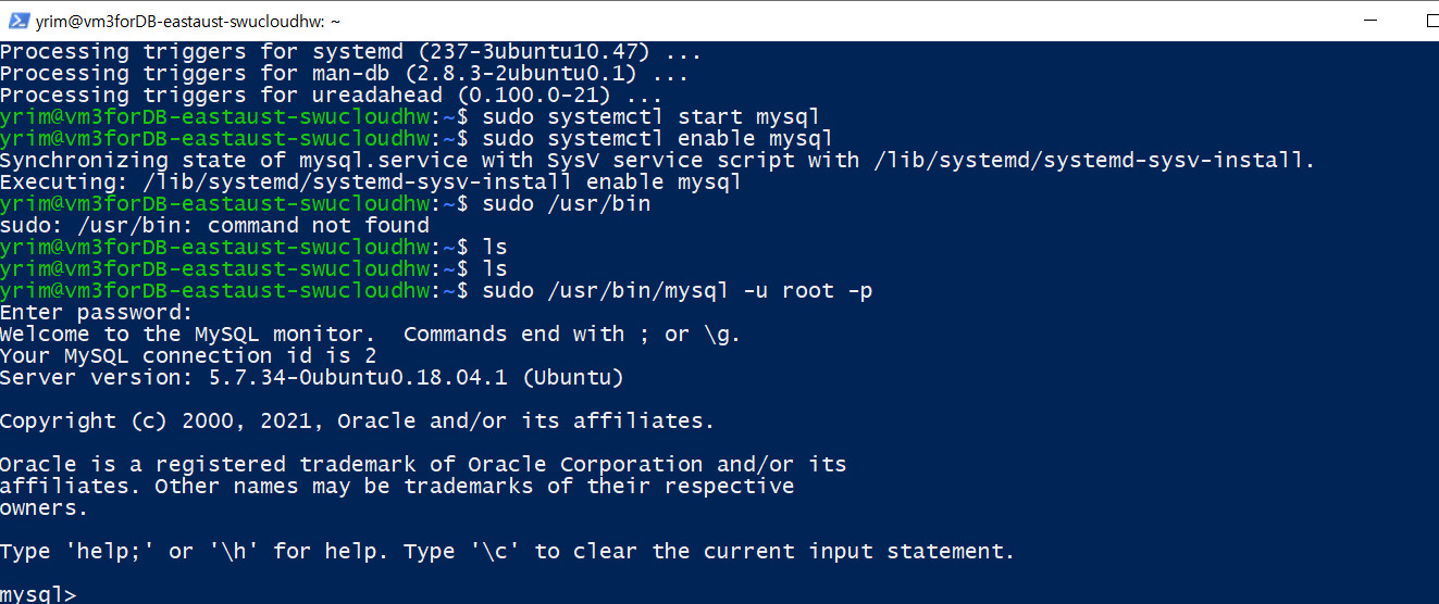 [그림 13] vm3-forDB-eastaust-swucloudhw 에 접속